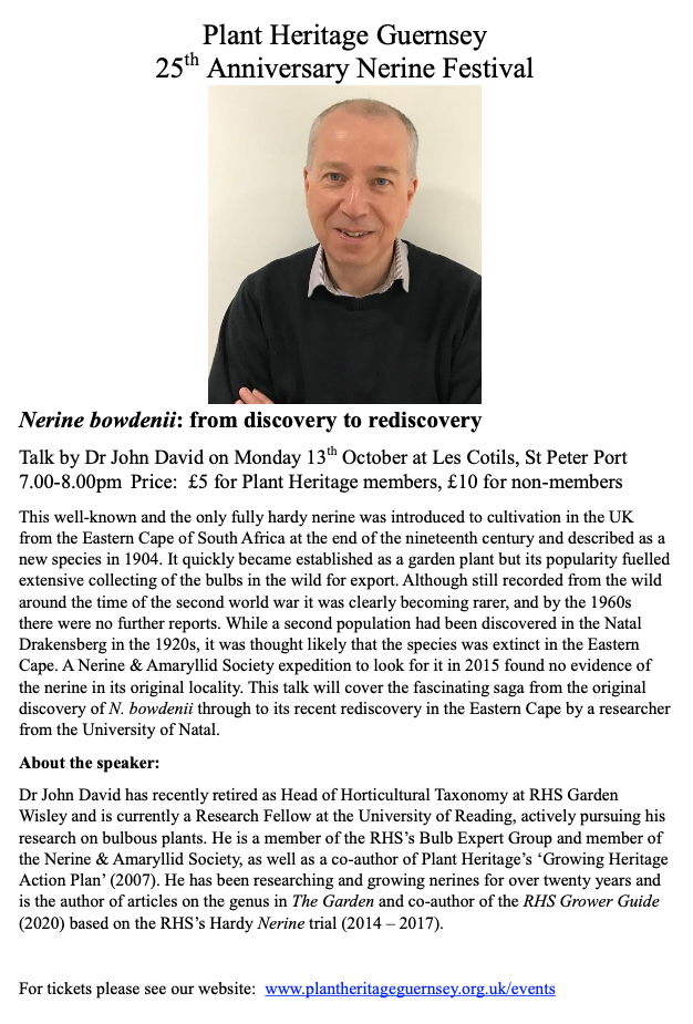 Nerine bowdenii: from discovery to rediscovery